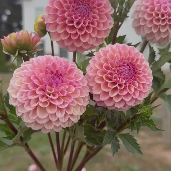 Unbelievably gorgeous Smokey pink ball dahlia! She lives up to the hype. Such a romantic elegant color, great for wedding work or bouquets!