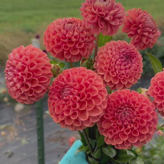 A must have classic ball form dahlia. Beautiful auburn color that blends well with a variety of other dahlias.